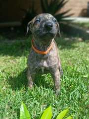 Six now only 5 gorgous Blue, Brindle and black whippet Puppies -2 Males Bennie has a red collar Jet has a blue collar. 4 females Mouse is the orange collar and is dark blue. Bridie is the brindle just like a little tiger Frieda is the yellow collar and a dark grey color. Bell is the green collar she is the runt of the litter and also a blue 7 weeks old Puppies will be 2 months on the 3rd of November and Ready for their forever homes.