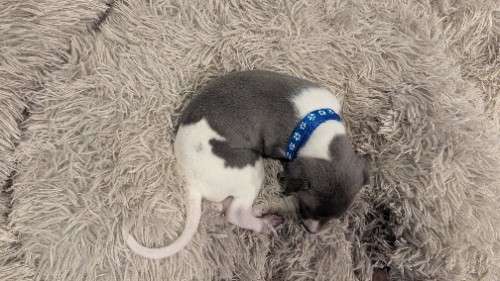 Beautiful first litter from full blue mother -Chia and White and brindle Dad Pericles,