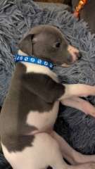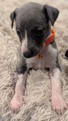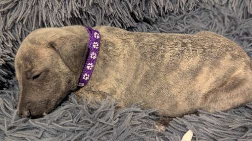Puppy 3 (purple collar) - Female full grey brindle SOLD