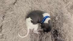 Puppy 4 (orange collar) - Female Blue and white with grey spot near tail